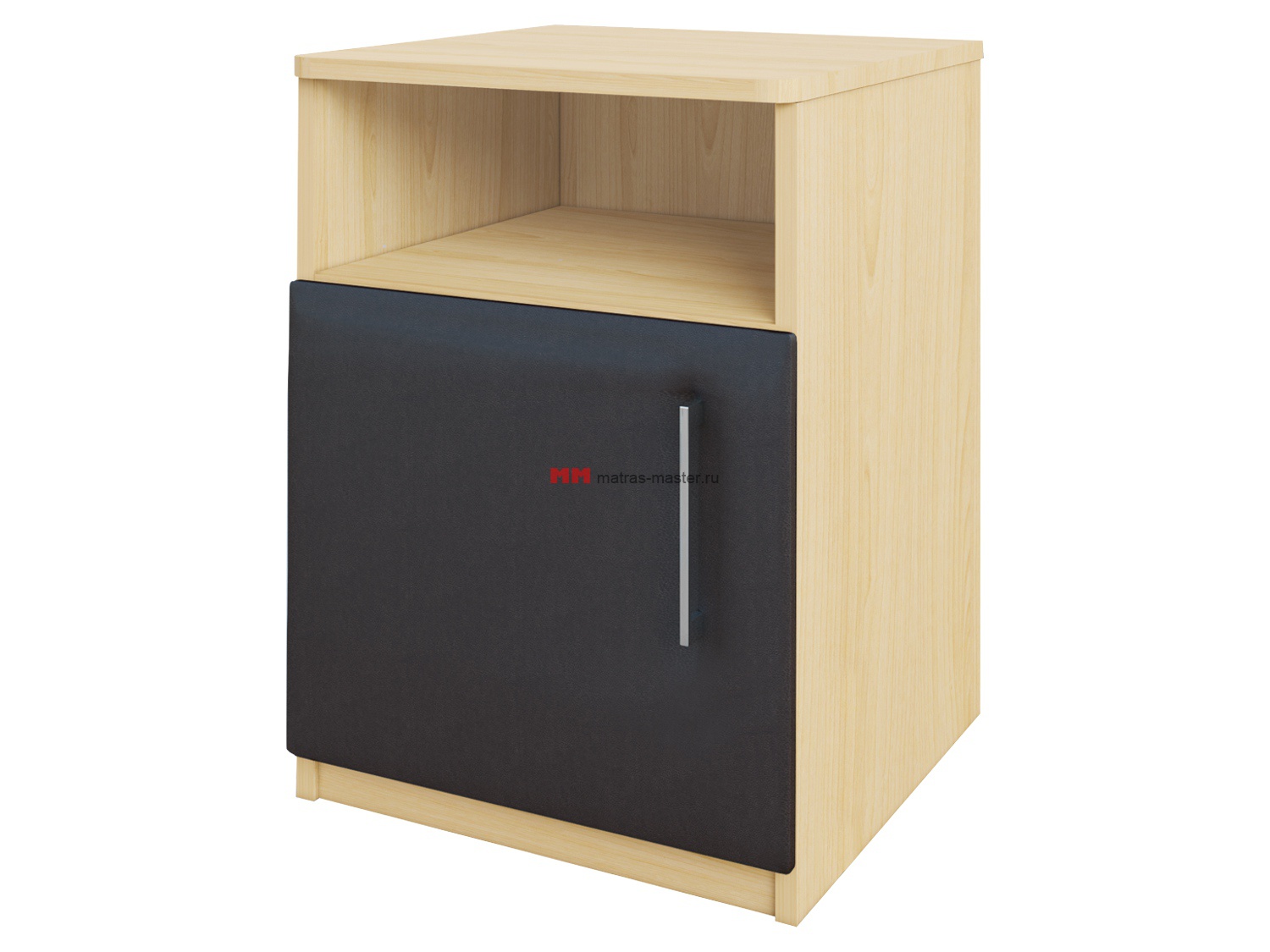 Дверца тумбы выполнена в обивке из экокожи.