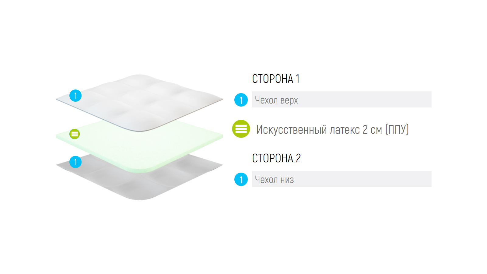 Универсальный наматрасник который подойдет для любой поверхности. В его состав входит высокоэластичная LX пена нового поколения. Которая обладает более выраженными эргономическими свойствами. Чехол наматрасника выполнен из хлопковой ткани с незначительным добавлением синтетики для увеличения его эластичности и срока службы. Фиксируется наматрасник двумя способами: - с помощью резинок по углам; (идеально для матрасов, диванов)- специальные липучки расположенные по всему периметру наматрасника; (идеально для ортопедической решетки, сложных спальных систем )