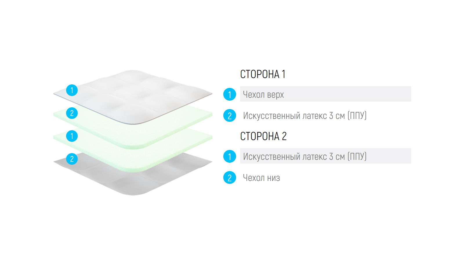Универсальный наматрасник, который подойдет для любой поверхности. В его состав входит высокоэластичная LX пена нового поколения, которая обладает более выраженными эргономическими свойствами. Чехол наматрасника выполнен из хлопковой ткани с незначительным добавлением синтетики для увеличения его эластичности и срока службы. Фиксируется наматрасник двумя способами: - с помощью резинок по углам; (идеально для матрасов, диванов)- специальные липучки расположенные по всему периметру наматрасника; (идеально для ортопедической решетки, сложных спальных систем )