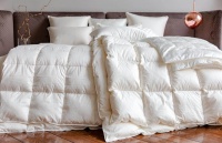 Стеганные пуховые одеяла Cloud Down Grass - это инновационный подход к вопросам стежки изделий с пуховыми наполнителями, а также классический подход к процессу очистки сырья и подбору тканей. В изделиях Cloud Down Grass стеганых классическими квадратами - применяется тонкий батист, высокой степени плотности. Изделия Cloud Down Grass- это симбиоз инновационного подхода к вопросам стежки изделий с пуховыми наполнителями и классического подхода к процессу очистки сырья и подбору тканей. В изделиях коллекции используется пуходержащий батист нежного сливочного оттенка, состоящий из смеси нитей TENCEL и длинноволокнистого хлопка.