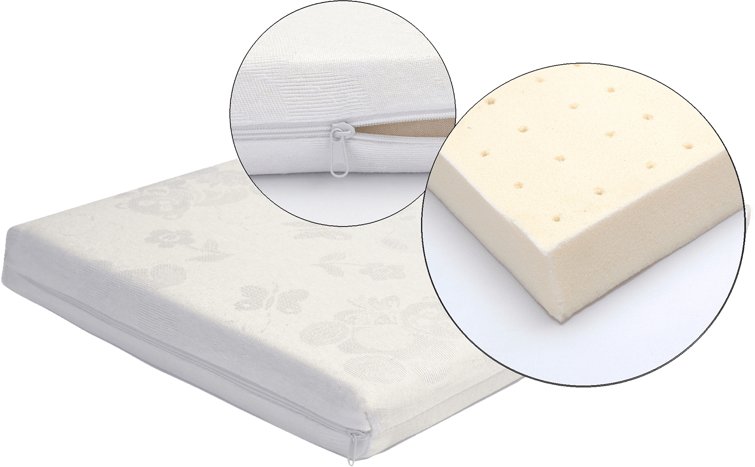 Природный латекс, используемый в качестве наполнителя, не вызывает аллергических реакций и не накапливает влагу. Благодаря пористой структуре, материал прекрасно пропускает воздух, и голова ребенка всегда будет оставаться сухой.