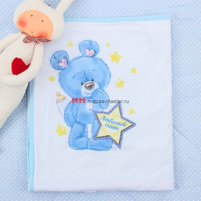 Детский двухслойный плед с ярким принтом из кулирки, подходит как для укрывания, так и для не тугого пеленания малыша.