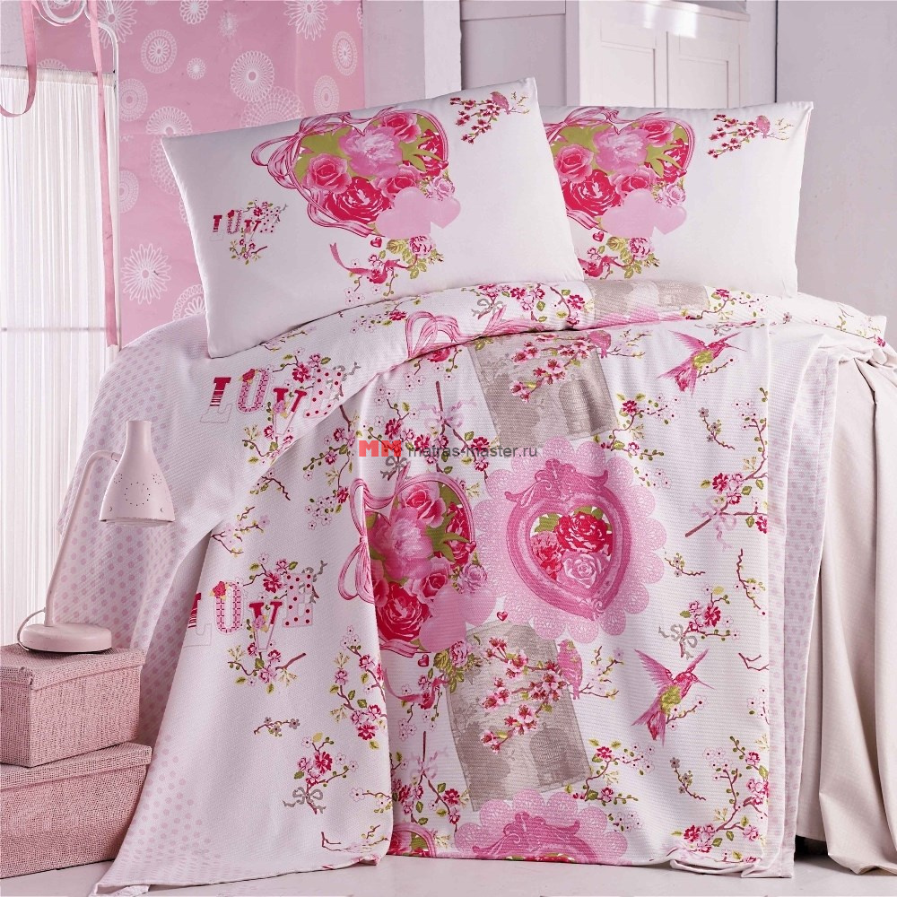 Легкий комплект постельного белья EVIM Roi pembe с простыней-покрывалом для укрывания.
