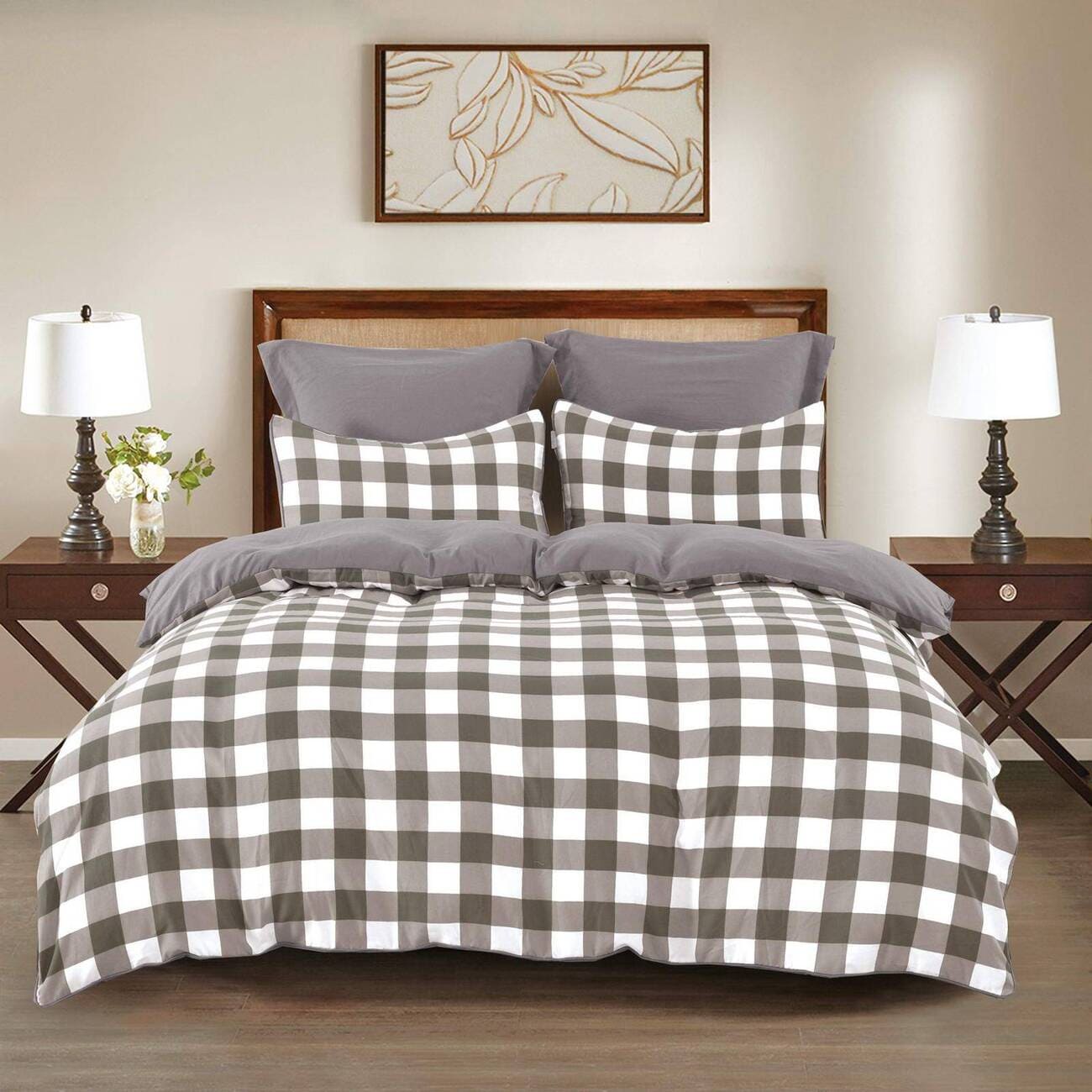 Коллекция Маркус от бренда Sofi de Marko выполнена из смесовой ткани на основе хлопка с добавлением вискозы. Две принтованные наволочки 50*70 см в точности повторяют рисунок пододеяльника, две наволочки 70*70 см и простынь однотонные. Застежка пододеяльника на пуговицах.