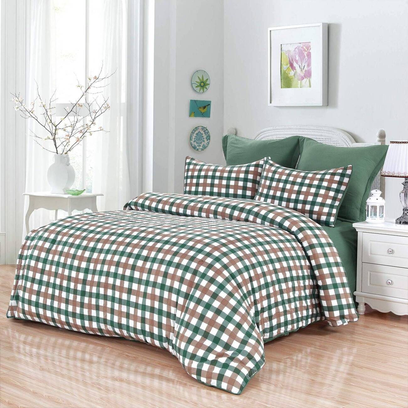 Коллекция Маркус от бренда Sofi de Marko выполнена из смесовой ткани на основе хлопка с добавлением вискозы. Две принтованные наволочки 50*70 см в точности повторяют рисунок пододеяльника, две наволочки 70*70 см и простынь однотонные. Застежка пододеяльника на пуговицах.