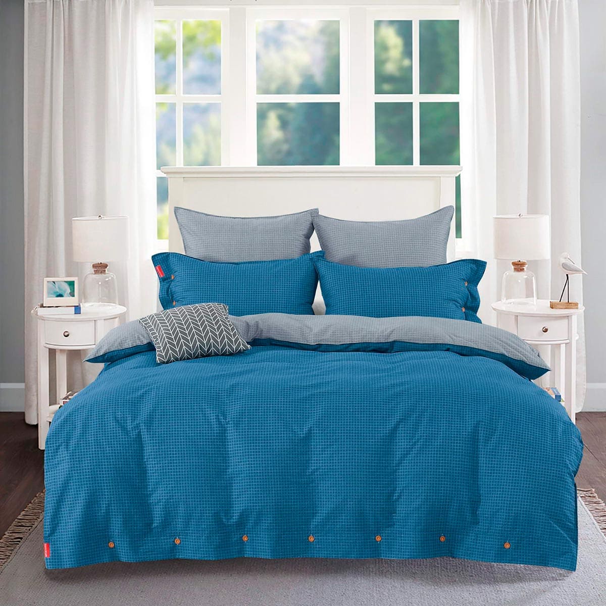 Постельное белье Sofi De Marko из мако-сатина имеет безупречный пошив, новая серия Николас декорирована пуговицами на двух наволочках 50*70 см и на пододеяльнике.