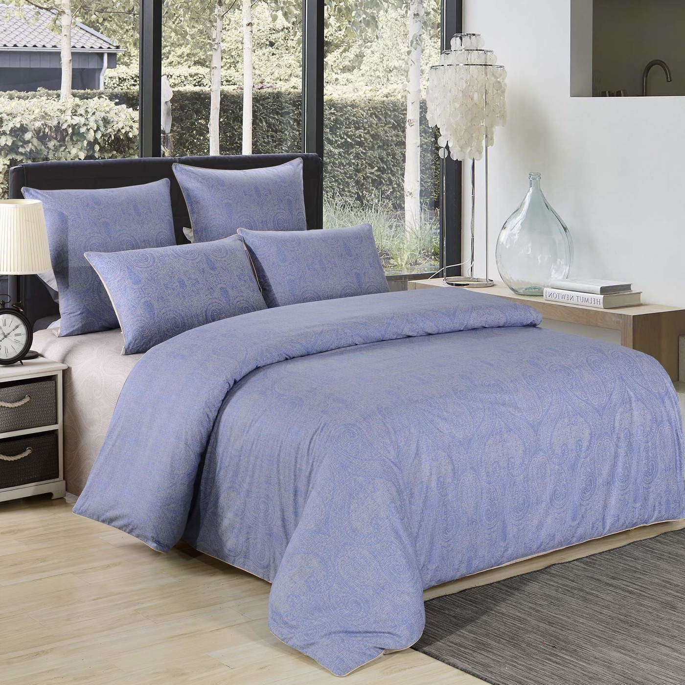 - Двуспальное, см: простыня 230х250, пододеяльник 180х210, наволочки 50х70 — 2 шт и 70х70 — 2 шт.