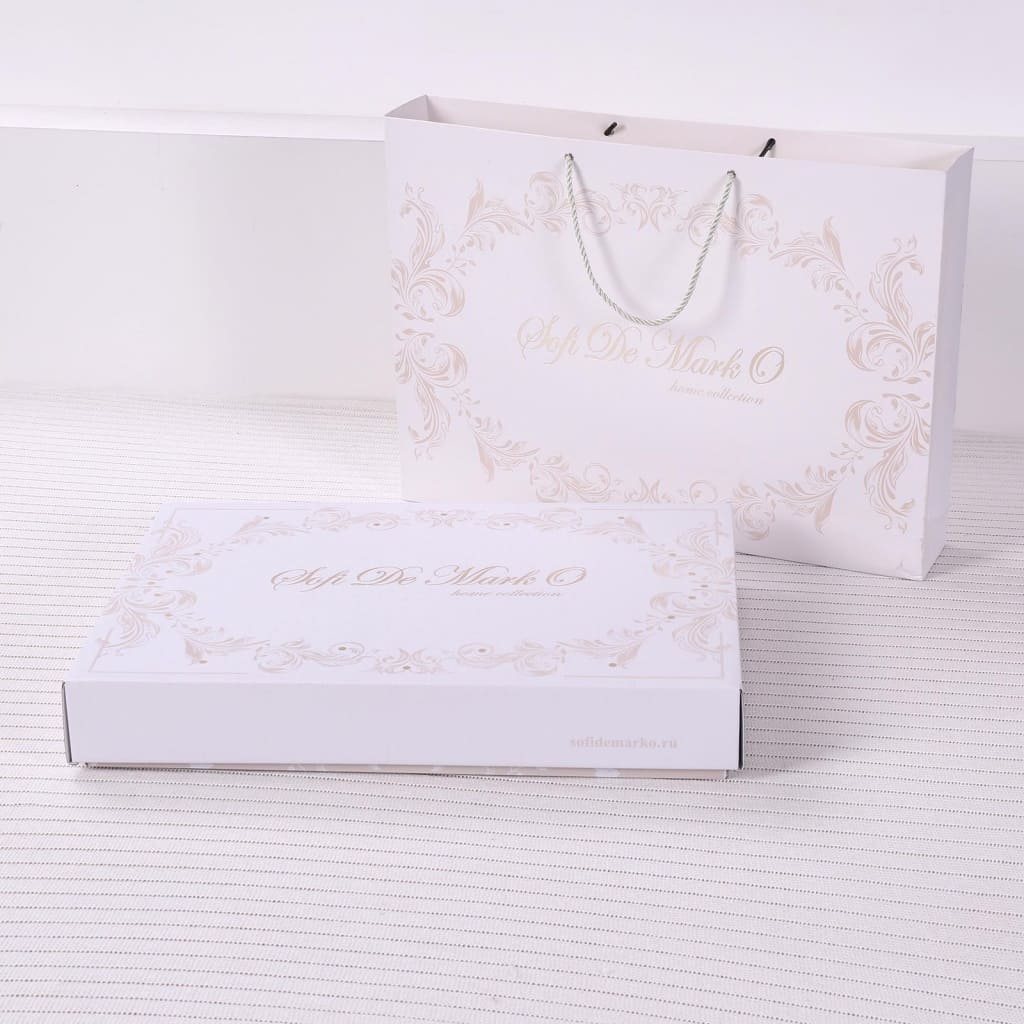 Комплект бережно сложен в подарочную упаковку с логотипом бренда плюс фирменный пакет с ручками из шелковистого витого шнура.