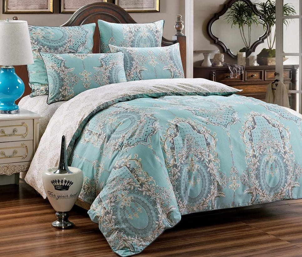 - Двуспальное, см: простыня 230х250, пододеяльник 180х210, наволочки 50х70 — 2 шт и 70х70 — 2 шт.